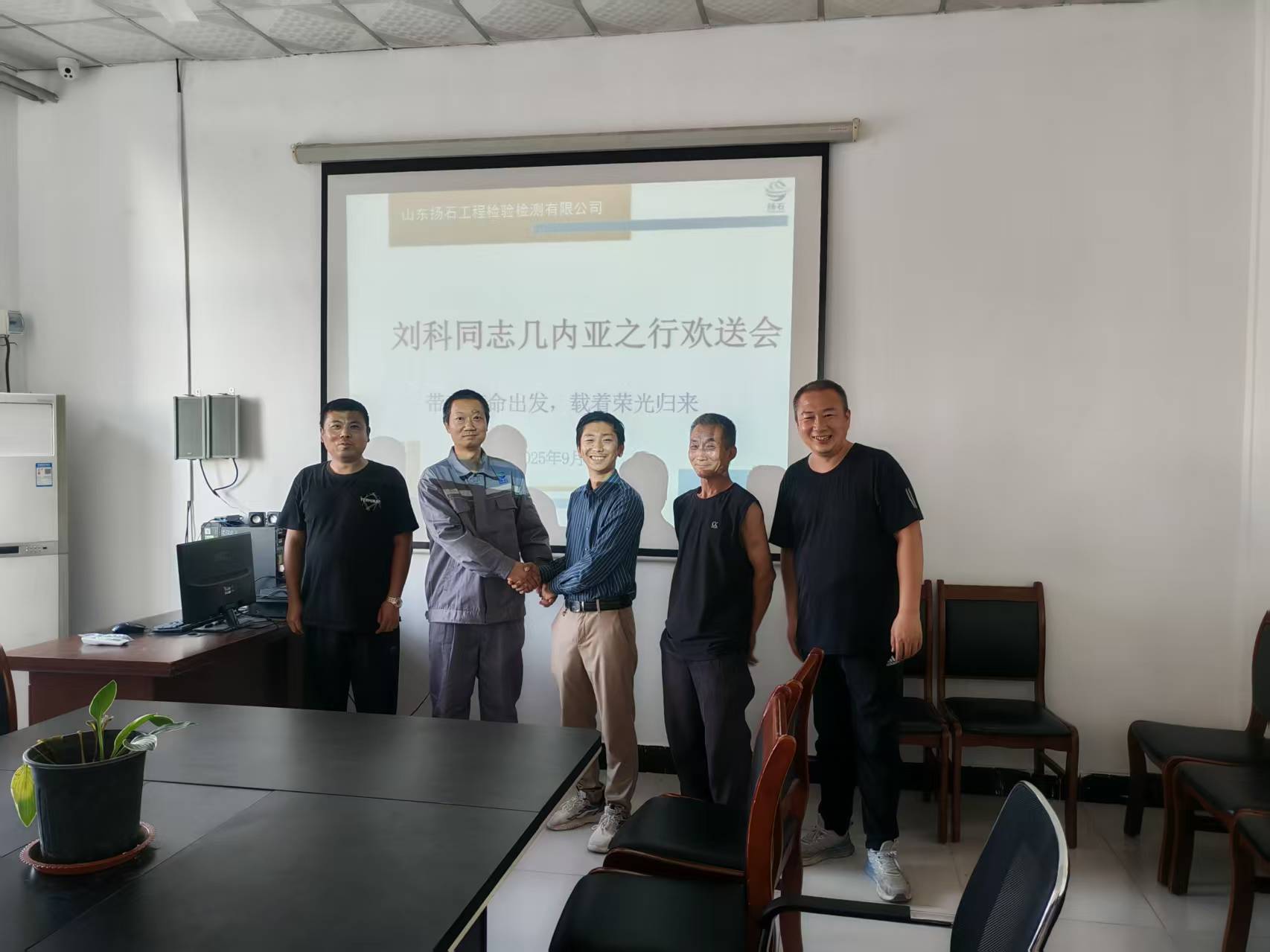 2025年9月25日,山東揚(yáng)石工程檢驗(yàn)檢測有限公司就劉科前往幾內(nèi)亞共和國檢測項(xiàng)目工作之行,舉行歡送會(huì),劉科同志...